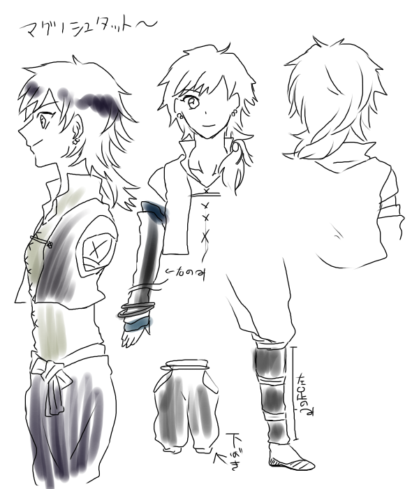 レームで剣闘士をしていた際、初めて仲良くなった子と対峙し殺さなくてはならなくなり運命を恨みかける。その際たまたまシェヘラザードに助けられ堕転はしなかったものの、完全な白には戻らず入り混じった灰色のルフの持ち主になる。